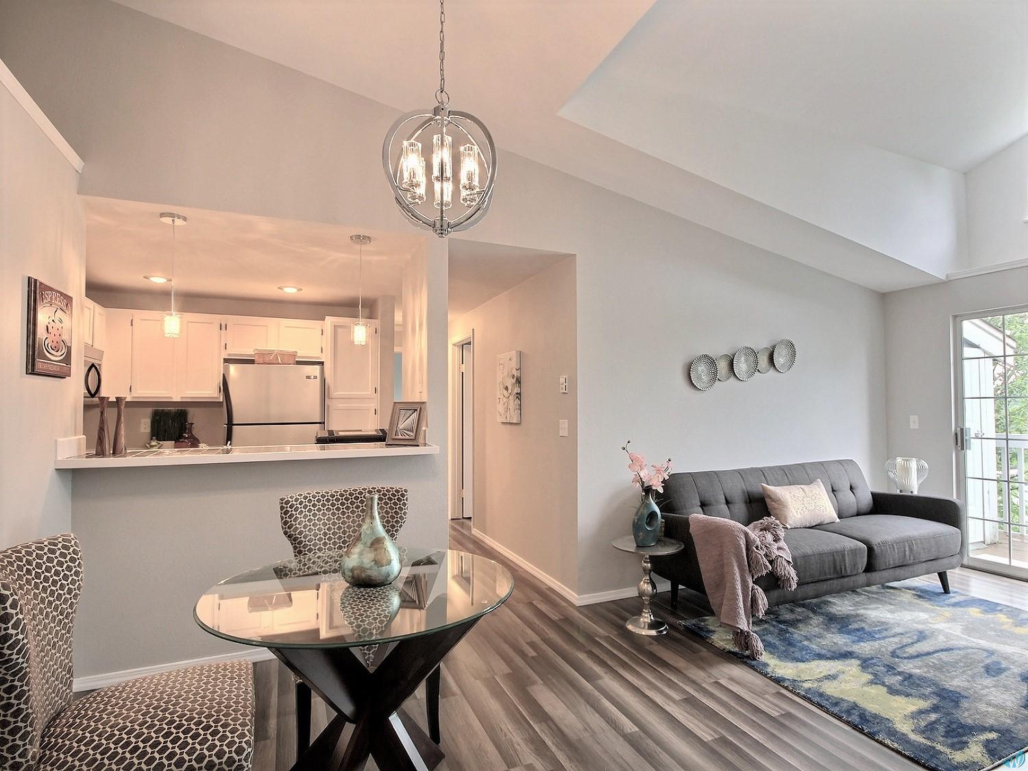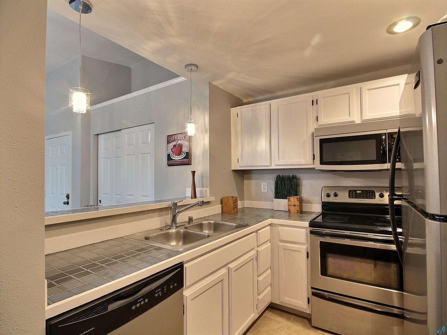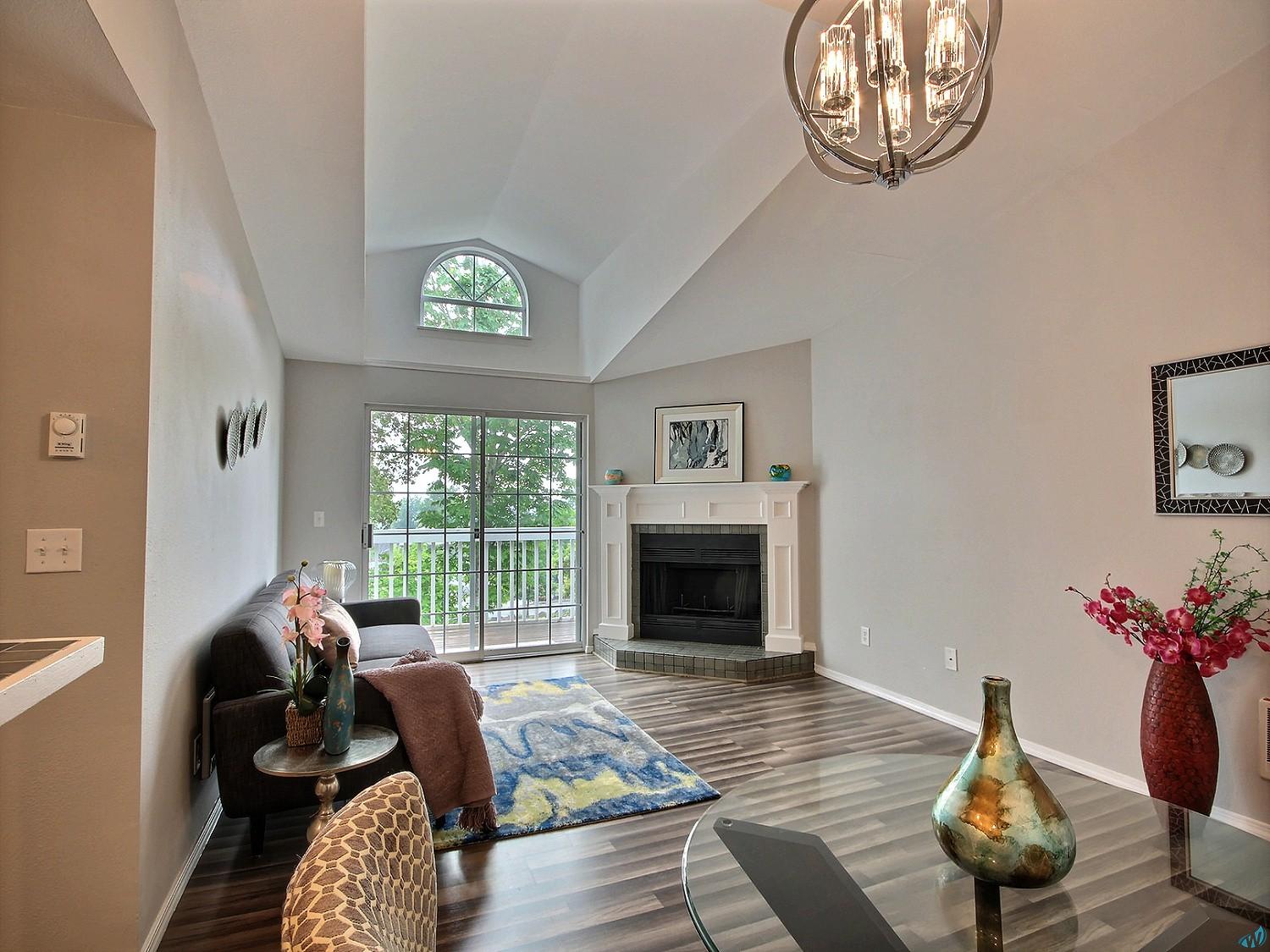 Gorgeous top floor unit with panoramic water views of Puget Sound and Olympic Mountains. Impeccable maintained and updated condo features vaulted ceilings, cozy fireplace, beautiful new flooring. Open concept, kitchen with tiled counters and stainless steel appliances. New high-end fixtures and chic lighting. Large master bedroom with en-suite bathroom and walk-in closet.Storage next to Deck.Assigned parking space. Washer/Dryer in Unit.Plenty of guest parking.