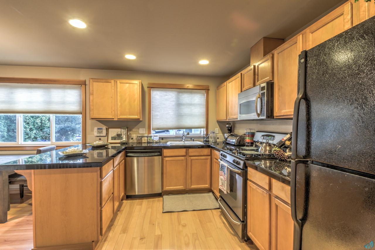 Urban living in desirable Green Lake area! Beautiful updated townhouse with granite counters, hardwood floors, gas stove, black/stainless steel appliances. Masterbedroom w/ vaulted ceilings, walk-in closet. Balcony on living area level. Over-sized 1-car garage. Good size patio -perfect for entertainment. Convenient access to shopping, restaurants & easy commute to I-5. Walking distance to Green Lake, Licton Springs Park and newly build(2017) schools (Elem/Mid/High).Very quiet neighborhood. No homeowner dues!